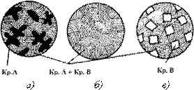 Рис. 4.3. Схема микроструктур сплавов: а – доэвтектического, б – эвтектического, в – заэвтектического