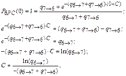 Найдем частные решения, используя начальное условие P 1(t = 0) = P6РС (t = 0) = 1. Первого частного решения не существует. Второе частное решение находится следующим образом: