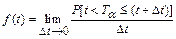 Следует отметить, что интенсивность отказов полнее характеризует надежность объекта в момент наработки t, чем плотность распределения отказов, т.к. интенсивность отказов показывает частоту отказа, отнесенную к числу объектов, работоспособных к моменту наработки t (N (t)), а плотность распределения отказов – к общему числу испытываемых объектов (N). Примечание. P [ t < Ta £ (t + D t)] – вероятность отказов в интервале наработки [ t, t + D t ], отнесенная к N объектам; P [ t < Ta £ (t+ D t) / Ta > t ] – вероятность отказов в интервале наработки [ t, t + D t ], отнесенная к N (t). Связь вероятности безотказной работы, вероятности отказов, интенсивности отказов и плотности распределения отказов между собой показаны в табл. 3.2. Таблица 3.2. Взаимосвязь вероятности безотказной работы, вероятности отказов, интенсивности отказов и плотности распределения отказов