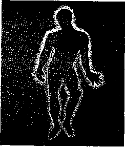 Рис. 14. Биоэнергетическое поле человека (аура). Слово аура—латинского происхождения, означающее «свет, сияние, ореол». Ученые, используя высокочувствительные специальные приборы, регистрируют излучения, образующие биоэнергетическое поле вокруг человека, связь человека с окружающей средой через его биополе — это основа парапсихологических явлений. Правая сторона человека излучает голубое сияние, левая сторона — желто-красное. Почти каждый человек может увидеть это излучение после нескольких часов пребывания в совершенно темной комнате, можно попытаться это сделать после длительного, примерно одночасового, пальминга