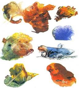 Как изменится наше настроение? Какие чувства мы будем испытывать? (Люди станут печальными, будут казаться усталыми, скучно жить в сером мире) Цвет больше, чем любой другой элемент композиции, обращен к нашим чувствам. Цвет - элемент композиционного творчества. Так ли верно это утверждение, давайте попробуем разобраться. Цвет - это один из признаков видимых нами предметов, осознанное зрительное ощущение. Восприятие цвета во многом зависит от цветового тона, степени его яркости и насыщенности. Что привлекает в первую очередь наше внимание в предметах, рекламе? (Это форма предмета и его цвет.) Цветовой круг - система цветов, в которой цветовое многообразие упорядочено на основании объективной закономерности. Он может быть использован как инструмент для ориентировочного расчета результатов смешения цветов, для определения интервалов между цветами при подборе сочетаний. Вы знаете, что есть цвета, которые невозможно получить путем смешивания каких - либо красок. Как называются эти цвета? Назовите их. (Основные цвета: это красный, желтый, синий.) Что означает понятие - составные цвета, как вы это понимаете? (Цвета, которые можно получить от смешивания основных красок.) Цветовой круг обычно делят на две части - теплую и холодную. Взгляните на цветовой круг, и вы без труда определите. Где теплые а где холодные цвета. Теплые цвета - (красный, желтый, оранжевый) передают силу, властность, активность, радость. Холодные цвета - (синий, зеленый и их производные) говорят о спокойствии, нежности, апатичности, грусти и вариации этих состояний. Определите в какой гамме выполнены данные произведения? Учащиеся выполняют задание. При составлении композиции важно не только эмоционально-чувственное отношение к цвету, но и знание законов цветовой композиции, основ цветоведения. Очень велика роль цвета в плоскостной композиции. Достаточно ввести цветовое пятно, чтобы все пространство перестало быть монохромным. Образное впечатление движения, легкости или плотности, веселья или строгости можно создавать при помощи цветных линий и цветовыми формами.) Цветовое пятно может стать АКЦЕНТОМ, меняющим общее цветовое восприятие работы. Цветовым мазком отвлеченной формы можно передать ощущение осени, листопада, не изображая конкретный лист или лес. Цветовыми пятнами можно вызвать ассоциации, связанные с морем, шумом набегающих волн, не изображая море и волны.
