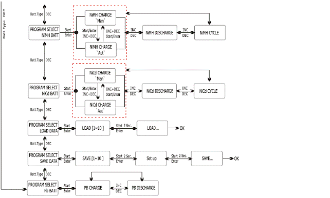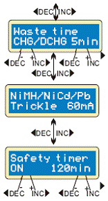 существует возможность досрочного прекращения процесса. Пожалуйста, учитывайте техническую спецификацию батареи. (Значения по умолчанию для никель-кадмиевой батареи: 12мВ, для никель-металлогидридной: 7мВ).