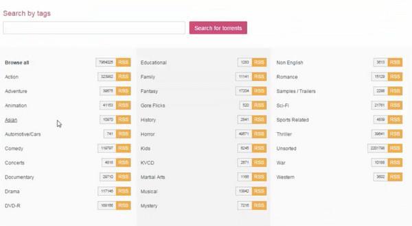 Слева в меню у нас разделы раздаваемых торрентов. Выбираем к примеру фильмы – Movies