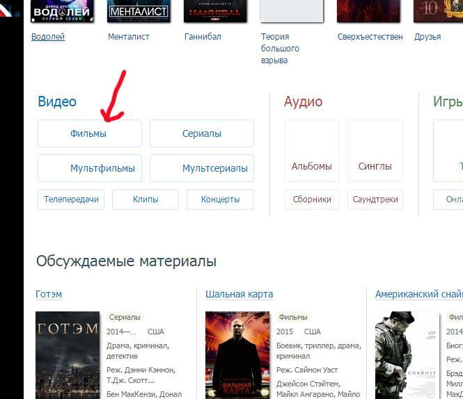 Выбираем вкладку фильмы
