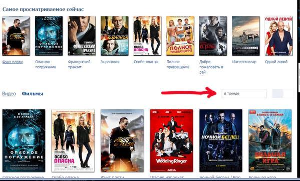 Теперь выбираем в тренде и у нас появится самые популярные фильмы –
