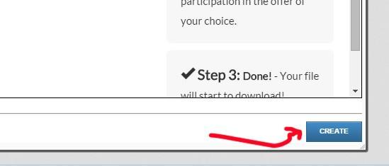 Теперь в правом нижнем углу нажимаем синею кнопку CREATE