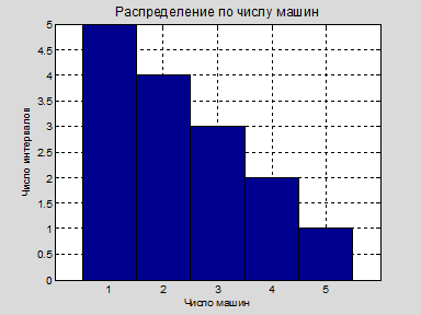 Рис. 1. Распределение по числу машин в 15-ти десятиминутных интервалах