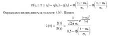 Рассмотрим законы распределения случайной величины Т, где Т - время безотказной работы изделия до первого отказа (время наработки на отказ). Экспоненциальный закон надёжности. При экспоненциальном законе распределения времени безотказной Т интенсивность отказов является постоянной, т.е. λ(t) = λ = const. Выпишем формулы по которым определяются количественные характеристики надёжности. Экспоненциальный закон надёжности справедлив для описания внезапных отказов, когда изделие не успевает ещё износиться, т.е. не стареет. Для экспоненциального закона вероятность безотказной работы на каком-то интервале времени τ не зависит от прошедшего времени, а зависит от τ. t1 = t + τ; P(t, t1)=P(t1)/P(t)=P(t+ τ)/P(t)=e(ст. – λ/(t+ τ)/e(ст. – λ/t)=e(ст. – λ/t) Здесь P(t, t1) - вероятность безотказной работы изделия на интервале времени (t, t1) при условии, что на интервале времени (0, t) изделие работало безотказно. Нормальный закон распределения. Он характеризует вероятность отказа при длительном изменении характеристик изделия (старение, износ). Нормальный закон распределения характеризует распределение времени безотказной работы изделия при возникновении отказов из-за износа и старения. Плотность распределения времени безотказной работы Т изделия равна: f (t)=(1/(кор(2 πDt))e(ст.(t-mt)^ 2/(2Dt) где mt, Dt - параметры закона распределения. mt - среднее значение случайной величины Т; Dt - дисперсия случайной величины Т; Для нормального закона распределения q(t) примет вид