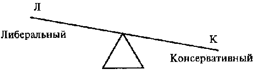 Рис. 5. Личность находится в равновесии, когда эти качели непрерывно раскачиваются между консервативным и либеральным потенциалами. Одна сторона качелей поднимается, и эта сторона входит в сознание человека; потребности этой стороны его натуры преобладают. Затем обстоятельства меняются, и вверх поднимается другая сторона качели. Пока человек живет по законам экспрессии, — выражая своим поведением, фантазиями или словами свои непосредственные переживания, — он близок к состоянию организмического равновесия, в котором ни консервативные, ни либеральные тенденции не преобладают. И лишь в таком состоянии личности не грозит фиксация какой-то из этих сторон. Одна из фундаментальных потребностей каждого человека заключается в том, чтобы быть в состоянии отвечать за свое равновесие. В моральном плане имеется в виду ответственность за свое "я" и свой естественный ритм равновесия, которая поддерживает контроль за поведением и не зависит в этом ни от кого другого. У всех нас есть и консервативная, и либеральная стороны. Консерватор должен принять свою либеральную сторону так же, как либерал — консервативную. Открыто выражая обе стороны своей натуры, человек получает естественные средства управления своим поведением, благодаря которым такое управление становится простой и легкой задачей, а потребность в налагаемом извне искусственном контроле сводится к минимуму. Внешние системы морали представляют собой сети искусственного контроля, необходимые, чтобы удерживать незрелых людей от неблагоразумных поступков. Как родители и супруги мы считаем, что нам следует навязывать моральные схемы своим детям и спутникам жизни, так как мы обычно не доверяем собственной способности к организмическому равновесию, а поэтому не в состоянии признать наличие такой способности и в тех, кого любим. Внутренняя система биполярного самовыражения, конечно же, представляет собой альтернативу внешней системе контроля. Ее можно назвать системой организмической саморегуляции. Вместо того, чтобы просто контролировать и ломать свое естественное самовыражение, человек сосредотачивается на понимании своих возможностей. Процитируем в связи с этим Перлза: "Я хочу рассмотреть также случай нервного срыва, который был вызван не избыточным контролем, а спровоцирован придирками друзей, постоянно твердившими: "Держи себя в руках". Здесь напрашивается пример с автомобилем. У машины несколько систем управления. Тормоза — лишь одна из них, причем самая грубая. Чем лучше водитель понимает, как пользоваться всеми этими системами управления, тем эффективнее будет работать машина. Если же он едет, не снимая ноги с педали тормоза, износ тормозных колодок и двигателя будет огромным; надежность автомобиля начнет падать, и рано или поздно он сломается. Чем лучше водитель понимает возможности машины, тем лучше он сможет их использовать, и тем меньше пострадает автомобиль. Люди с избыточным самоконтролем подобны такому неопытному водителю. Им неведомы иные средства управления, кроме тормозов, то есть подавления"[29]. Актуализатор — это человек, который сознает как сильные, так и слабые свои стороны, и поэтому не проецирует какую-то одну из них на окружающих. Он понимает, что всегда существует параллель между внутренним и внешним — тем, что мы испытываем по отношению к с