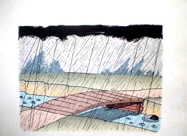 Падающие капли дождя,