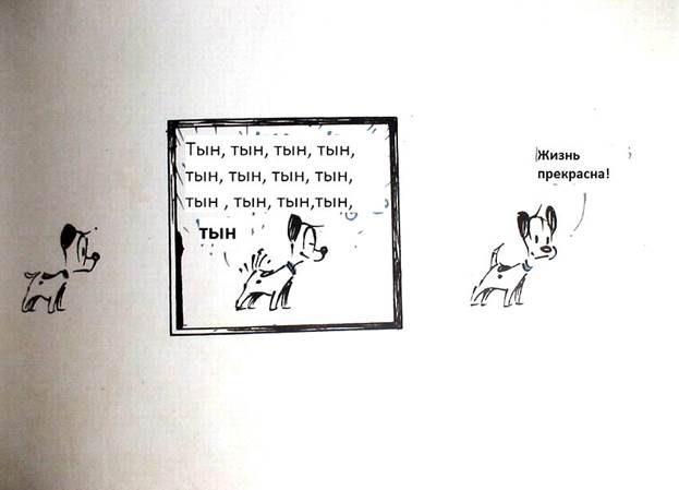 Просто посмотрите на хвост... На некоторых собак стоит только взглянуть, одного взгляда достаточно, чтобы их хвост начал... тын, тын, тын... «Жизнь прекрасна! Жизнь прекрасна!» И они не рассказывают себе истории, о том, почему жизнь прекрасна. Это прямое осознание.