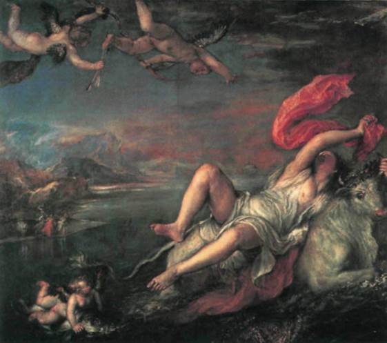 7. Тициан. Похищение Европы. 1559—1562 г. Холст, масло. 177,8 х 205 см. Музей Изабеллы Стюарт Гарднер, Бостон ВВЕДЕНИЕ • 19 Цвет. Мир вокруг нас многоцветен — хотя, надо сказать, даже люди с нормальным зрением способны различать лишь небольшую часть свето вого спектра. Цвет может использоваться в графике, а иногда и в скульптуре, но как необходимое изобразительное средство он прежде всего связан со всеми видами живописи. Это относится и к монохромной живописи, использующей разные от тенки темных, нейтральных тонов, преимуществен но серого и коричневого. Из всех визуальных эле ментов искусства цвет несомненно является на иболее выразительным — и меньше всего подчи няется каким-либо законам и правилам. Может быть, именно поэтому он с середины XIX века привлекает особое внимание исследователей и те оретиков искусства. В их ученых трудах мы читаем, что красный цвет, к примеру, производит опреде ленный оптический эффект, выдвигаясь на пере дний план, а синий как бы отступает в глубь картины, или что красный — цвет необузданных страстей и агрессии, а синий — цвет скорби и меланхолии. Но цвет скорее можно сравнить с капризным и непослушным ребенком, который все делает наоборот. Его роль в каждом произведении конкретна и определяется только намерениями художника. Проблема цвета в живописи, проблема колорита успела обрасти многочисленными теориями, но несомненно одно: цвет воздействует на чувства зрителя, его роль по преимуществу эмоциональна — в отличие от линии, выполняющей, как упомина лось выше, скорее интеллектуальную функцию. Сравнительные достоинства линии и цвета в свое время стали предметом жарких споров между сто ронниками Микеланджело и его великого совре менника — венецианского живописца Тициана. Ти циан, будучи сам искусным рисовальщиком, пре красно усвоившим уроки Микеланджело, тем не менее стоит у истоков колористической традиции в мировой живописи — традиции, которая продол жалась в творчестве Рубенса и Ван-Гога и в XX веке получила воплощение в работах экспрессионистов. Одно из поздних полотен Тициана — «Похищение Европы» (илл. 7) — дает нам пример звучного, насыщенного колорита, характерного для стиля мастера. К сожалению, подготовительные рисунки для этой грандиозной композиции не сохранились, но есть все основания полагать, что художник не переносил предварительный эскиз на полотно, а с самого начала работал кистью, внося многочисленные правки по мере продвижения впе ред. Используя краски различной густоты, худож ник сумел в совершенстве передать фактуру об наженного женского тела, развевающиеся на ветру одежды Европы и косматую шерсть быка-Зевса. Он блестяще использовал для этого технику так называемых лессировок — последовательного на ложения на холст тонких, просвечивающих кра сочных слоев. Эта техника позволила ему добиться