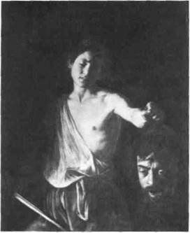 9. Караваджо. Давид с головой Голиафа. 1607 г. или 1609-1610 гг. Холст, масло. 125,1 х 100 см. Галерея Боргезе, Рим разочарование, заставляет увидеть себя в непри глядном свете. И Пикассо в своей картине развивает эту мысль, показывая взаимодействие персонажа с его отражением. Зеркало само по себе слегка искажает наш облик, вносит в него известные поправки; здесь мы видим, как «зеркальный портрет», изменяя внешность, раскрывает недо ступную для обычного зрения внутреннюю сущ ность. Женщину у Пикассо интересует не столько ее физический облик, сколько таящаяся в глубинах ее натуры чувственность. Зеркало становится ареной противоборствующих страстей, и этот конфликт передается с помощью смелой цветовой гаммы. Фигура женщины в зеркале окружена интенсивными пятнами цвета — синего, зеленого, лилового; кажется, что она смотрит на женщину перед зеркалом пристально, со жгучим интересом. На щеке у нее явственно заметна слеза. Мучительную напряженность этого взаимного созерцания, когда персонаж оказывается лицом к лицу со своей внутренней, скрытой сущностью, подчеркивает мастерски найденный главный цветовой акцент — зеленое пятно, которое светится, словно факел, на лбу у женщины в зеркале. Пикассо наверняка был знаком с теорией дополнительных цветов и знал, что красный и зеленый, расположенные рядом, усиливают друг друга. Но одной этой теорией вряд ли можно объяснить, почему художник выбрал для столь важного, центрального пятна зеленый цвет, сделав его как бы средоточием внутренней жизни героини. Его выбор был скорее продиктован более общими живописными и экс прессивными задачами. Освещение. В изобразительном искусстве (за исключением сугубо современных инсталляций) мы в основном имеем дело с отраженным светом. Что касается света неземного, божественного проис хождения, то он традиционно передавался в жи вописи несколькими способами — в виде потока золотистых лучей, в виде сияющего нимба или ореола. Если действие происходит ночью или раз ворачивается в темном помещении, художник может прямо ввести в картину источник света — например, факел или свечу. Но наиболее распрос траненный метод предполагает передачу отражен ного света с помощью градации освещенности, многообразных переходов от света к тени. Резко обозначенный контраст между светом и тенью, известный как светотень (от итал. chiaroscuro), связан с именем великого живописца итальянского барокко — Караваджо, который открыл этот прием и сделал его, если можно так выразиться, своей визитной карточкой. Характерный образец стиля Караваджо — «Давид с головой Голиафа» (илл. 9), где светотень особенно эффектно усиливает драматизм сюжета. Невидимый для зрителя ис точник света с левой стороны моделирует форму и способствует передаче фактуры, а умело расп ределенные световые блики создают удивительный эффект присутствия: возникает та самая волшебная иллюзия, когда нам кажется, что изображенный в натуральную величину Давид стоит перед нами. Живописное пространство, с его неопределенной глубиной, становится как бы продолжением реального пространства, в котором находимся мы сами. И хотя фигура Давида обрезана рамой, это впечатление сохраняется благодаря мастерски вы бранному ракурсу: левая рука Давида, которая держит страшную отрубленную голову его врага, словно тянется из темного фона навстреч