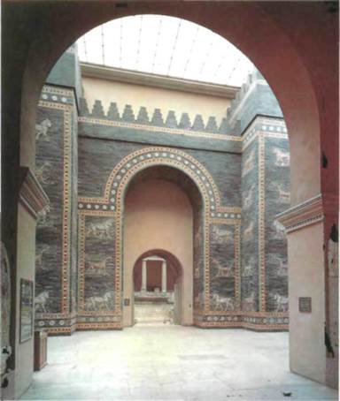 47. Ворота Иштар (после реставрации). Из Вавилона, Ирак, ок. 575 г. до н. э. Глазурованный кирпич. Музей Передней Азии, Берлин хность. Выложенные из формованного кирпича фи гуры быков, драконов и других животных, движу щихся торжественной процессией в обрамлении широких поясов яркого цветного орнамента, от личаются живостью и грацией, вновь напоминаю щей нам об удивительном искусстве в изображении животных, свойственном мастерам Месопотамии в эпоху ранних династий. Персидское искусство Персия, это высокое, окруженное горными хребтами плоскогорье к востоку от Месопотамии, названа так по имени народа, который, захватив в 539 году Вавилон, унаследовал бывшие владения ассирийской державы. В настоящее время страна эта вернула себе название Иран — название более древнее и подобающее ей гораздо лучше, так как персы, впервые нанесшие эту землю на карты мировой истории, были в ней, в сущности, при шельцами, появившимися здесь лишь за несколько столетий до своих эпохальных завоеваний. Насе ленный людьми с доисторических времен, Иран всегда служил своего рода перевалочным пунктом для многочисленных племен, мигрировавших сюда из азиатских степей на севере или из Индии на юге. Некоторое время они обычно оставались здесь, подчиняя себе местное население или смешиваясь с ним, пока следующая волна иммигрантов не заставляла их двигаться дальше — в Месопотамию, Малую Азию или южно-русские степи. Об истории этих переселений ученым известно мало, ибо на ходящиеся в их распоряжении сведения и по сей день скупы и недостоверны. 60 • ДРЕВНЕЕ ИСКУССТВО БЛИЖНЕГО ВОСТОКА Анималистический стиль