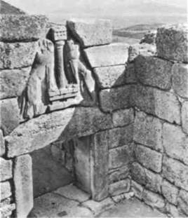54. Львиные ворота. Микены, Греция, 1250 г. до н. э. МИКЕНСКОЕ ИСКУССТВО В позднеэлладскую эпоху на юго-восточном берегу материковой Греции располагался ряд по селений, во многом похожих на города минойского Крита. Центром их тоже являлся дворец. Наиболее значительным из этих городов был Микены, дав ший свое имя всему народу, их населявшему. Поначалу микенцев считали выходцами из Крита, так как произведения искусства, найденные здесь археологами, очень напоминали минойские. Сейчас, однако, установлено, что на самом деле они были потомками греческих племен, пришедших на пол уостров около 2000 г. до н. э. Первые четыре столетия племена эти живут непритязательным пастушеским бытом. В их скромных захоронениях мы находим лишь глиня ную посуду, да еще, кое-какое бронзовое оружие. Однако к 1600 году погребения их неожиданно принимают форму сначала глубоких шахт, а затем каменных гробниц конической формы, известных как «гробницы-улья». Расцвета эта культура до стигает к 1300 г. до н. э.' В это время создаются впечатляющие постройки из концентрических слоев аккуратно вытесанных каменных блоков, одну из которых можно видеть на илл. 53-Первооткрыватель ее, решив, что для гробницы она слишком велика, назвал ее Сокровищницей Атреев, что, конечно, не соответствует действительности. Столь тщательно выстроенные гробницы создавались в ту эпоху только в Египте. За исключением таких мелких деталей, как форма колонн и отдельные декоративные мотивы, микенская архитектура ничем не обязана миной ской традиции. Дворцы на материке представляли собой выстроенные на высоких холмах крепости, окруженные стенами из массивных каменных бло ков — тип постройки, на Крите совершенно неиз вестный. Самым впечатляющим остатком этих мощных укреплений являются так называемый Львиные Ворота в Микенах (илл. 54). Уже следу ющим поколениям греков они внушали такой тре пет, что те считали их делом рук мифических одноглазых великанов — Циклопов. Впрочем, в Со кровищнице Атреев, выстроенной из более мелких и тщательно вытесанных блоков, перемычкой двери также служит циклопическая глыба (илл. 53). Еще один совершенно чуждый минойской тра диции элемент Львиных ворот — это огромный, помещенный над самым проемом каменный рельеф. Обрамляющие символическую минойскую ко лонную фигуры львов отличаются геральдической мрачностью и величием. Их мускулистые напря женные тела, функция стражей, которую они вы полняют, и симметричное построение рельефа го ворят о влиянии Ближнего Востока. Здесь стоит вспомнить о происшедшей вскоре после 1200 г. до н. э. Троянской войне, которая привела микенские племена в Малую Азию. Но торговые экспедиции и военные набеги на восток, через Эгейское море, они совершали, по-видимому, и задолго до этого. ИСКУССТВО ГРЕЦИИ Произведения искусства, с которыми мы зна комились до сих пор, напоминают загадочных чужестранцев: за плечами у них чужой для нас опыт, да и «языковой барьер» дает о себе знать. И если оказывается, что мы все же в состоянии понять хоть немногое из того, что они хотят сказать, в нас рождается чувство удивления и благодарности. А вот к грекам у нас уже совсем иное отношение: мы немедленно узнаем в них родственников, старших членов своей собственной семьи. Но общаясь с нашими «предками» нужно помнить, что непрерывность традиции, связываю щей нас с древними гр