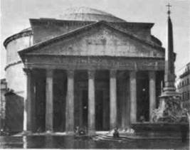 87. «Интерьер Пантеона», Джованни Паоло Паннини. Ок. 174 г. Национальная галерея, г. Вашингтон. Собрание Сэмюэля Кресса ИСКУССТВО ДРЕВНЕГО РИМА - 97 интерпретации смотрятся почти одинаково. Цен ность колонн как несущих элементов конструкции стала призрачной, однако эстетическая функция сохранена, ибо благодаря им огромная протяжен ность фасада соотносится с возможностями чело веческого восприятия. Арки, своды и бетон впервые в истории ар хитектуры позволили римлянам создать обширные внутренние пространства. Вначале они применя лись главным образом в термах — огромных банях, которые ко временам империи стали важными центрами общественной жизни. Опыт, накопленный при их строительстве, был использован при соору жении других, более традиционных для римской архитектуры зданий, и это подчас приводило к поистине революционным результатам. Date: 2015-07-25; view: 764; Нарушение авторских прав |