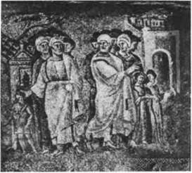 106. «Расставание Лота и Авраама» Ок. 430 г.. Мозаика Санта-Мария-Маджоре, Рим Отраженная в них реальность — это не событие, однажды случившееся и потому вошедшее в сис тему пространственно-временных связей обычного мира, а засвидетельствованная художником сегод няшняя реальность живого мира Священного Писания (в случае эпизода с Лотом и Авраамом — тринадцатой главы ветхозаветной книги Бытия). Вследствие этого художнику не требуется пе редавать конкретные детали, свойственные для исторического повествования. Для него взгляд и жест важнее трехмерной формы или эффектного движения, связанного с драматическим развитием событий. Симметричность композиции с проходя щим по центру разделом между группами Лота и Авраама подчеркивает символическое значение их расставания: отныне каждый из них пойдет своей дорогой, причем путь Авраама, путь праведности и завета с Богом, противопоставлен пути Лота, которому предстоит встретиться с гневом Господ ним. Различие предстоящего изображенным в пра вой и левой группах людям жизненного пути мы воспринимаем особенно остро, когда обращаем вни мание на фигурки стоящих по краям детей — Исаака и дочерей Лота — и вспоминаем об уго тованной им судьбе. Свиток, кодекс, искусство иллюстрации Из каких же источников черпали сюжеты создатели мозаичных циклов повествовательного характера, как тот, что сохранился в церкви Санта 114. РАННЕХРИСТИАНСКОЕ И ВИЗАНТИЙСКОЕ ИСКУССТВО