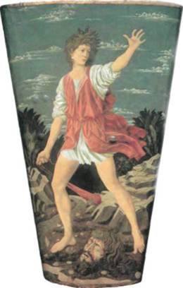 218. Андреа дель Кастаньо. Давид. Ок. 1450-1457 г. Кожа. Высота 115,6 см. Национальная художественная галерея, Вашингтон (собрание Д. С. Уайденера) моделировке и четкости контуров, изображение кажется барельефным, лишенным трехмерности. Художник не придает значение глубине простран ства. Так, например, рощица в правой части холста выполняет роль своего рода декоративной ширмы. Фигуры кажутся бесплотными и невесомыми -даже касаясь земли, они словно плывут. Все это не согласуется с основополагающими принципами искусства Раннего Возрождения, но, тем не менее, полотно не выглядит средневековым. В нем ощу щается наслаждение свободой движения, и при всей своей эфемерности тела обладают чувственной красотой. Неоплатонизм. В «Рождении Венеры» впервые со времен античности богиня изображена обна женной, и ее поза напоминает классические статуи Венеры. Более того, сюжет картины трактован со всей серьезностью и даже торжественностью. Но разве могли существовать подобные образы во вре РАННЕЕ ВОЗРОЖДЕНИЕ В ИТАЛИИ • 235 мена христианской культуры без того, чтобы ху дожника и его покровителя не обвинили в возро ждении язычества? Чтобы разобраться в этом парадоксальном яв лении, мы должны понять смысл картины Ботти челли и рассмотреть использование классических сюжетов в искусстве Раннего Возрождения. В Сред ние века классическая форма стала независимой от сюжета. Живописцы и скульпторы могли заим ствовать античные позы, жесты, типы и выражения лиц, но при одном условии — образ послуживший источником вдохновения, не должен был узнавать ся. Поэтому древние философы превращались в апостолов, Орфей становился Адамом, а Геракл — Самсоном. Когда средневековым мастерам прихо дилось изображать языческих богов, они вместо существующих образцов брали за основу литера турные описания. Кроме того, в средневековье классические мифы порой трактовались с нраво учительной точки зрения как аллегории христи анских заповедей. Например, могли объявить, что похищенная быком Европа символизирует спасен ную Христом душу. Но подобные туманные объяс нения вряд ли могли служить достойным оправ данием для возвращения языческим богам их Date: 2015-07-25; view: 477; Нарушение авторских прав |