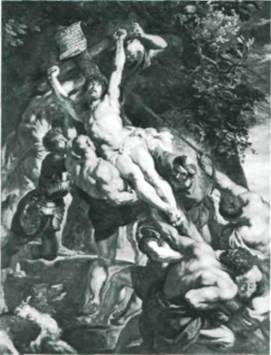 286. Питер Пауль Рубенс. Воздвижение креста. 1609—1610 г. Центральная часть триптиха. Холст, масло. 4,57 х 3,4 м. Антверпенский собор 287. Петер Пауль Рубенс. Прибытие королевы Франции Марии Медичи в Марсель. 1622—1623 г. Дерево, масло. 63,5 х 50,2 см. Пинакотека, воспроизводим здесь подготовительный эскиз мас лом для одного эпизода — высадки юной королевы в Марселе (илл. 287). Не слишком выигрышный эпизод Рубенс превращает в феерический спектакль, полный непревзойденного величия. В то время, как Мария Медичи спускается по трапу, над ней парит Слава, триумфально трубя в две трубы, а Нептун и его команда с рыбьими хвостами поднимаются из морской пучины на поверхность — завершив свою охрану королевы в пути, они предаются веселью по случаю ее благополучного прибытия. Все здесь связано единым ритмом кругового движения: небо и земля, исторические лица и аллегорические персонажи, даже рисунок и живопись, так как Рубенс использовал подобные живописные эскизы при подготовке своих композиций. В отличие от художников предыдущих эпох, он предпочитал разрабатывать свои картины в отношении света и цвета с самого начала (большинство его рисунков — это фигурные этюды или портретные эскизы). Такое целостное видение, у истоков которого, хотя еще и без явных достижений, стояли великие венецианцы, было наиболее ценным в наследии Рубенса для живописцев последующих поколений. Около 1630 года на смену бурному драматизму удовольствий, как «Вакханалия» Тициана (см. илл. 240). Но эти веселящиеся люди уже принадлежат не золотому веку прошлого, а современности, хотя их игриво штурмуют полчища амуров. Эта картина, видимо, имела для художника особый смысл, так как он только что женился на прекрасной шес тнадцатилетней девушке (его первая жена умерла в 1б2б году). Северные живописцы обращались к теме «Сада любви» еще со времен придворного стиля интернациональной готики. Ранние варианты этого сюжета, однако, были чисто жанровыми сценами, на которых просто изображались в саду группы модно одетых молодых влюбленных. Соединив эту традицию с классическим мифологиз-мом Тициана, Рубенс создал очаровательный поэтический мир, в котором миф и реальность составляют неразрывное целое. Ван Дейк. Помимо Рубенса, международного признания добился еще один фламандский живо писец эпохи барокко. Настоящий вундеркинд, Ан тонис ван Дейк (1599—1641) был уникальным яв БАРОККО ВО ФЛАНДРИИ И ГОЛЛАНДИИ • 305