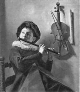 только стиль позднего Рембрандта (ср. илл. 296). Ежедневный опыт соприкосновения со страданием и смертью наложил отпечаток на лица этих жен щин: они сами стали словно образами смерти — доброй, неумолимой и вневременной. Лейстер. Виртуозность Хальса была такова, что и имитировать ее было не так-то просто — не удивительно, что у него было мало последователей. Единственно значимой среди них стала Юдифь Лейстер (1609—1660). Ее очаровательный «Мальчик, играющий на флейте» (илл. 293) — настоящий шедевр. Поглощенный игрой музыкант — это запоминающийся образ, соответствую 293. Юдифь Лейстер. Мальчик, играющий на флейте. Холст, масло. 72,1 х 61,9 см. Национальный музей, Стокгольм