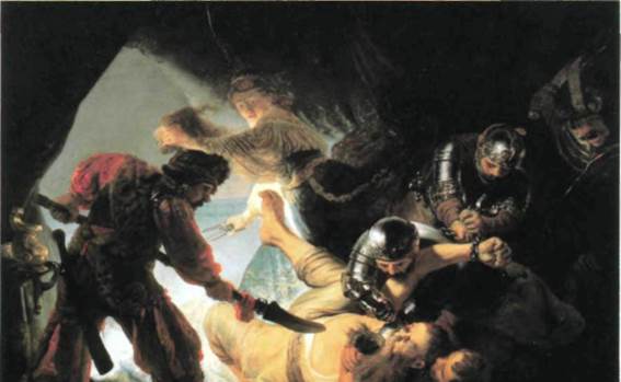 294. Рембрандт. Ослепление Самсона. Холст, масло. 2,36 х 3,02 м. Штеделевский институт, Франкфурт БАРОККО ВО ФЛАНДРИИ И ГОЛЛАНДИИ • 309