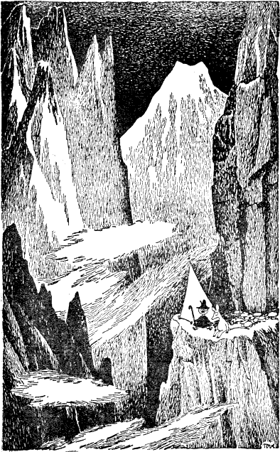 К вечеру они поднялись под самые облака. Гора завесилась густым туманом, идти по тропе стало скользко и опасно. Они промёрзли до костей (теперь Муми-тролль с печалью вспоминал о шерстяных штанах), и куда ни глянь - повсюду вокруг них была пустота.