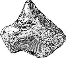 Рис. 3.7. С. Хэзлдин Уоррен заявил, что этот предмет, расщепление которого стало, по его мнению, результатом воздействия естественных факторов, очень сильно напоминает мустерианский остроконечный инструмент. Не смотря на то, что камень был обнаружен в эоценовой формации, его обработка вполне могла быть делом рук человека.