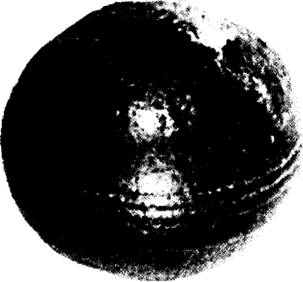 Рис. 6.9. Металлический шар из Южной Африки с тремя параллельными насечками вокруг центральной части Шар этот обнаружен в докембрийских минеральных отложениях, возраст которых оценивается в 2,8 миллиарда лет.