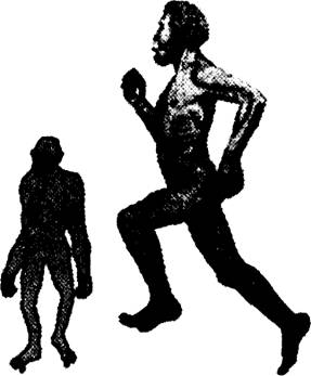 Рис. 12.7. Слева: после того как в Олдувайском ущелье в 1987 году был обнаружен ОН 62, Homo habilis стали изображать иначе, гораздо меньше ростом и более обезьяноподобным. Справа: Homo habilis, как его представляли до 1987 года. За исключением головы, по своей анатомии Homo habilis похож на человека.