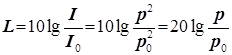 Уровень ощущения звука L пропорционален десятикратному логарифму интенсивности звука, отнесённой к интенсивности на пороге слышимости. Величина L измеряется в относительных логарифмических единицах – децибелах (дБ). Уровень звука можно также выразить через звуковое давление: