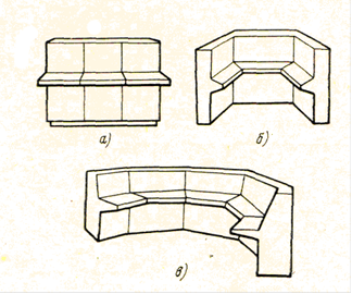 Рис. 2. Формы пультов: а — фронтальная; б — трапециевидная; в — многогранная