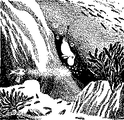 – Там вода, – сказал Муми‑тролль, принюхиваясь. Он сделал шаг в ту сторону, откуда дул морской ветер, сделал другой и наконец побежал, потому что больше всего на свете Муми‑тролли любят купаться! – Погоди! – закричал Снифф. – Не оставляй меня одного! Но Муми‑тролль остановился лишь тогда, когда добежал до самой воды. Он сел на песок и стал смотреть на волны. Одна за другой они накатывали на берег, и у каждой был гребень из белой пены. Немного погодя с опушки примчался Снифф и уселся рядом. – Тут холодно, – сказал он. – Помнишь, мы катались на парусной лодке с хатифнаттами и попали в ужасный шторм? Как плохо мне тогда было! – То было в совсем другой истории, – сказал Муми‑тролль. – А в этой я хочу купаться! И он шагнул прямо в волны прибоя. (Муми‑тролли, видите ли, так практично устроены, что почти совсем не нуждаются в одежде.) Мартышка спустилась с дерева и следила за ними: – Стой! – закричала она. – Вода мокрая и холодная! – Ага! – сказал Снифф. – Мы начинаем производить впечатление. – Ты умеешь нырять с открытыми глазами? – спросил Муми‑тролль. – Умею, но не люблю, – ответил Снифф. – Кто знает, что может встретиться под водой? Хочешь нырять – ныряй на свою голову! – А, ерунда! – отмахнулся Муми‑тролль и нырнул в большую волну, всю высвеченную солнцем. Сперва он не видел ничего, кроме зеленых пузырей света, но когда опустился поглубже, разглядел леса водорослей, колыхавшихся над песчаным дном. Песок был белый и чуточку волнистый, его украшали ракушки, розовые изнутри и белые снаружи. Чуть подальше от берега зеленоватый полумрак еще больше сгущался, а еще подальше открывался черный провал, уходящий прямо в бездну. Муми‑тролль повернулся, выскочил на волну и на ее гребне возвратился обратно. Снифф и Мартышка сидели рядышком на песке и голосили: – Спасите! Помогите! – Мы уж думали, ты утонул, – сказал Снифф. – Или что тебя съела акула. – А, ерунда! – сказал Муми‑тролль. – Я в море как дома. Между прочим, под водой у меня явилась идея. Не знаю только, стоит ли посвящать в наши дела посторонних. И он многозначительно взглянул на Мартышку. – Вали отсюда, – сказал Снифф. – У нас секреты. – А я люблю секреты! – крикнула Мартышка. – Обещаю, клянусь вам держать язык за зубами! – Возьмем с нее клятву? – спросил Муми‑тролль. – Ладно, – сказал Снифф. – Только это должна быть очень страшная клятва! – Повторяй за мной, – сказал Муми‑тролль и медленно проговорил: – Пусть меня поглотит бездна, пусть грифы расклюют мои высохшие кости, пусть я никогда больше не попробую мороженого, если нарушу эту великую тайну!!! Ну? Мартышка повторила клятву, только очень небрежно и совсем не в том порядке. У нее была очень плохая память. – Ладно, сойдет, – сказал Муми‑тролль. – Теперь слушайте. Я задумал стать искателем жемчуга, и весь свой жемчуг я зарою в ящике тут на берегу. – А кем станем мы? – спросил Снифф. – А вы можете стать теми, кто раздобывает ящики для искателей жемчуга, – ответил Муми‑тролль. – Так я и знал, – мрачно сказал Снифф. – Всегда мне достается самое трудное, А все приятное достается тебе. – Но ведь ты только что был проводником, да и нырять ты разве умеешь! – беспечно ответил Муми‑тролль и снова шагнул в воду. Снифф постоял‑постоял, похлопал ушами и побрел вдоль берега у самой воды. Мартышка ловила крабов – маленьких желтых крабов с глазами на стебельк