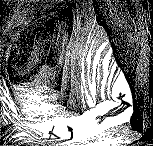 – Грот! Мировецкий грот с крабами! Снифф не двинулся с места и только жалобно заскулил. Всю жизнь он мечтал о взаправдашнем гроте. И вот грот совсем рядом, там, за этими опасными скользкими скалами… Он сделал несколько шагов, и сердце застучало у него в груди. «Покровитель всех троллей и сниффов! – взмолился он. – Будь милостив, будь милостив, ведь я такой маленький, такой робкий!» Затем он зажмурился и ступил на опасный уступ. Несколько раз через него перелетали клочья пены. Он шел маленькими‑премаленькими шажками, не сгибая ног, и все время крепко зажмуривал глаза, чтобы не видеть пляшущих вокруг волн. Еще ни разу в жизни он так не боялся – и не чувствовал себя таким храбрым. Когда он перешел на ту сторону, Мартышки нигде не было видно. С замирающим сердцем Снифф заглянул в грот. Грот был большой, как раз такой, каким и полагается быть гроту. Его красивые ровные каменные стены уходили в вышину к синему окну неба, а пол был устлан песком, таким же белым и гладким, как на морском дне. Снифф зарыл лапы в песок и вздохнул от счастья. «Поселиться бы здесь на всю жизнь, – подумал он. – Поставить маленькие полки, выкопать в песке место для спанья, а по вечерам зажигать свечу. И еще, может, сделать веревочную лестницу, чтобы забираться на крышу и любоваться морем. То‑то удивится Муми‑тролль…» Возвращаясь обратно по опасной скале, он уже не боялся так сильно. «Мой грот, – не переставая думал он. – Мой грот, это я нашел его». (И он взаправду верил, что нашел его он.) В глубокой задумчивости брел он по берегу, пока не вернулся к тому месту, где оставил Муми‑тролля искать жемчуг. Там уже лежал целый ряд красивых блестящих жемчужин, а сам Муми‑тролль пробкой скакал в волнах прибоя. Мартышка с важным видом сидела на берегу. – У меня важное поручение, – сказала она. – Теперь я казначей. Я уже пять раз пересчитывала жемчужины и каждый раз получала новый результат. Тут Муми‑тролль выбрался на берег. Он нес в охапке кучу ракушек, не считая тех, что были у него на хвосте. – Ну, теперь хватит! – сказал он, стряхивая с глаз водоросли. – Где ящик? – Похоже, на здешнем берегу нет приличных ящиков, – ответил Снифф. – Зато я сделал открытие! У‑ди‑ви‑тельное открытие! – Какое? – осведомился Муми‑тролль. Он любил открытия не меньше, чем таинственные пути, купанье и всяческие секреты. Снифф, как артист, выдержал паузу и медленно произнес: – Грот. – Настоящий грот? – вскрикнул Муми‑тролль. – Со входом, через который можно попасть внутрь? С каменными стенами и с песчаным полом? – Со всем, всем, всем! – гордо ответил Снифф. – Настоящий грот, и нашел его я! Совершенно самостоятельно. – Так ведь это же куда лучше, чем ящик! – воскликнул Муми‑тролль. – Сейчас же отнесем туда жемчужины! – Совсем моя идея! – сказал Снифф. – Как раз об этом я все время и думал. Они отнесли жемчужины в грот и красиво уложили их рядком на песке. Время от времени в дверь залетали соленые брызги, а сквозь окно в потолке наводило свои золотые мосты солнце. Друзья лежали на спине на мягком песочке и смотрели в небо. – А знаешь, – сказал Муми‑тролль, – если подняться в воздух на много‑много сот километров, небо там уже не голубое. Там, вверху, оно совсем черное, Даже днем. – Почему? – спросил Снифф. – Так уж, – ответил Муми‑тролль. – А еще там в темноте бродят небесные чудища – Скорпионы, Медведицы, Овны. – А 