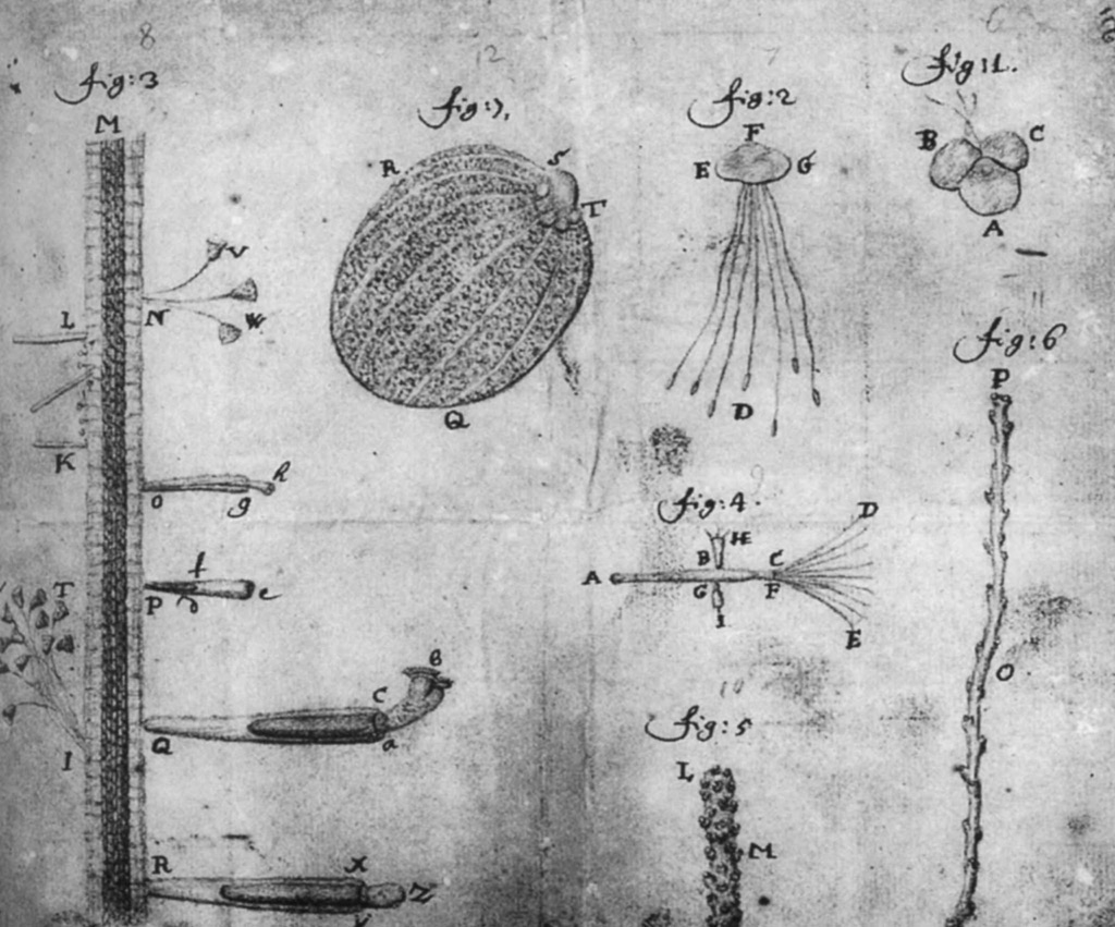 Страница из письма Антони ван Левенгука, присланного в Лондонское королевское общество в 1702 году и сразившего наповал научное сообщество того времени. На иллюстрации изображены организмы, обитающие в ряске на поверхности стоячей воды, в частности коловратки (рисунок 3, Q, R). Рисунки выполнены настолько тщательно, что вполне подошли бы и для современной научной публикации