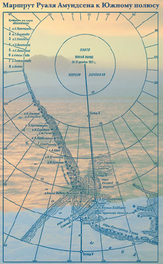 Пять мозолистых обветренных рук взялись за шест, подняли развевающийся норвежский флаг и первыми водрузили его на географическом Южном полюсе… Р. Амундсен