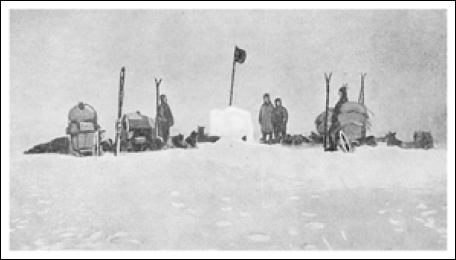 Быстро завершив дневной переход, мы рано стали лагерем. Уже на следующий день на востоке показались огромные торосы, которые мы впервые увидели между 81 и 82° южной широты, когда везли провиант на второй склад. Очевидно, воздух был очень чистый. Но количество различаемых нами торосов было таким же. Опыт подсказывал нам, что пирамиды, сооружаемые по пути на юг, будут превосходными ориентирами на обратном пути. И мы решили сделать побольше таких вех. Всего мы построили 150 двухметровых пирамидок. На них пошло 9000 снежных кирпичей, которые мы нарезали сделанными для этого большими ножами. В каждой пирамидке оставлялась записка с ее номером, координатами и указанием, сколько и в какую сторону ехать до следующей пирамидки, лежащей севернее. Такая осторожность с моей стороны может показаться чрезмерной. Но я всегда считал, что в этих безбрежных просторах, где нет никаких ориентиров, понятие «излишняя осторожность» не существует. Если собьешься с дороги, нелегко будет добраться до дома. К тому же в работе с пирамидками было еще одно очевидное преимущество. Каждый раз, когда мы останавливались строить знак, наши собаки отдыхали, а это очень важно, чтобы выдерживать темп. Первую пирамидку мы поставили на 80°23 южной широты. На первых порах мы ограничивались одним знаком через каждые 13 и 14 километров. Тридцатого застрелили первую собаку Это был Буне из упряжки Ханссена. Из-за преклонного возраста он не поспевал за остальными и был только обузой. Мы оставили его про запас в пирамидке, и он нам, вернее собакам, потом очень пригодился. В этот день мы достигли второго важного пункта – склада на 81 ° южной широты. Мы самую малость отклонились к востоку. Расставленные поперек курса дощечки, которыми мы обозначили склад, было видно издалека. Если судить по ним, здесь совсем не было осадков. Как воткнули их, так и стоят. Перед складом мы пересекли две внушительные трещины; очевидно, снег заполнил их на большую глубину, поэтому обошлось без осложнений. В 2 часа дня мы подошли к складу Все было в полном порядке. Флаг развевался на флагштоке – и не скажешь, что он скоро 8 месяцев висит здесь. Сугробы вокруг склада достигали в высоту около полуметра.