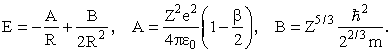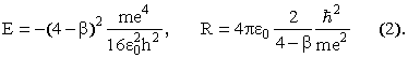 где A = (4 - β)e2, B = 2h2/4π2m, и найдем значение R, при котором энергия минимальна (приравняв производную от E по R нулю). Это значение R = B/A. Теперь имеем для основного состояния