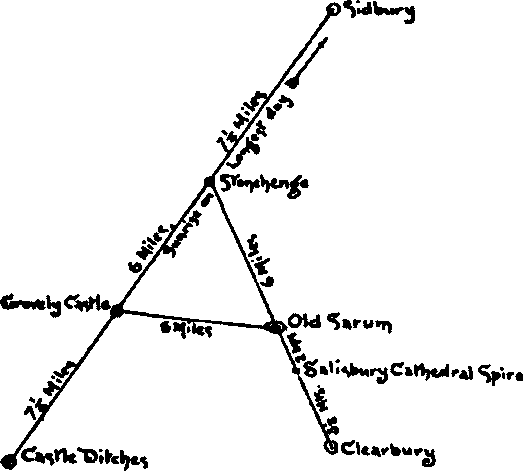 Карта лей‑линий в окрестностях Стоунхенджа, составленная сэром Норманом Локьером