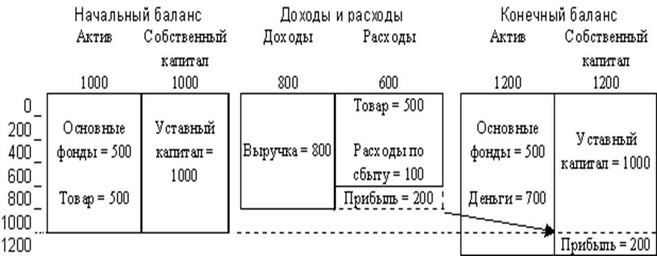 Рисунок 1.2.3. Схема взаимосвязи между балансом и отчетом о прибылях и убытках