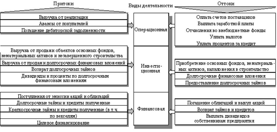 Рисунок 1.4.1. Состав денежных потоков по отдельным видам деятельности