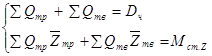где Wн.i W к.i – грузовместимость носового, кормового i –го отсеков соответственно, м3. Определения распределенной массы грузовых помещений (трюм, твиндек) 2 ¸ 4 отсеков осуществляем с использованием метацентрической высоты – hопт. Определяем момент от переменных и постоянных нагрузок относительно киля – Мст.Z Мст.Z=Dp(Zm–hопт)–D0Z0–åGi.з.Zi.з.. где Zm – аппликата поперечного метацентра определяется по кривым теоретического чертежа; hопт – оптимальное значение метацентрической высоты принимается самостоятельно в пределах (0,6 ¸ 1,2) м.; Zo – аппликата ЦТ порожнего судна; åQiзZiз – суммарный статический момент от принятых запасов относительно киля, см. табл. 9.4; Распределенную массу трюмов – åQтр и твиндеков – åQтв получим решив систему уравнений