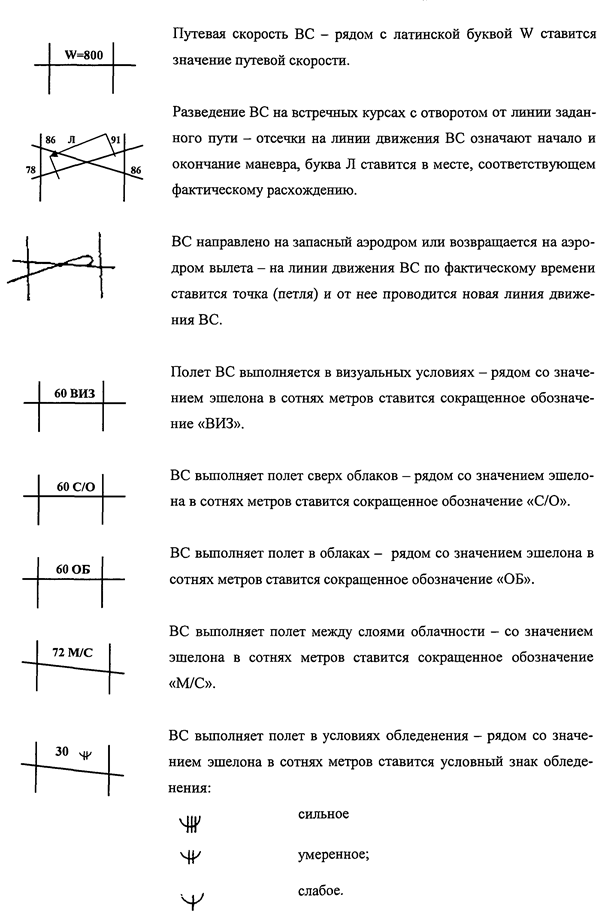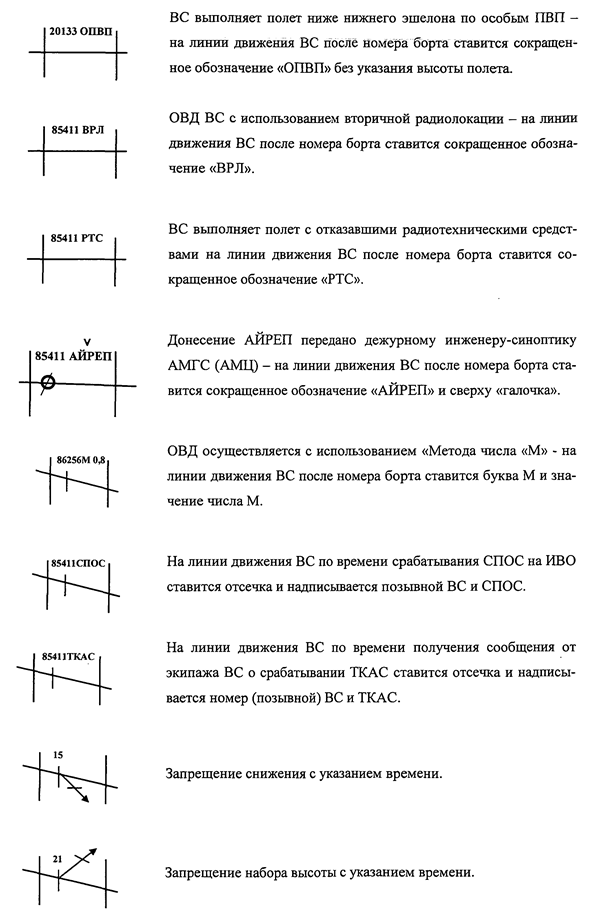 Регистрация и контроль воздушной обстановки в зоне (районе) диспетчеров РЦ ЕС ОрВД, ВРЦ ЕС ОрВД, ДПП с использованием планшетки (рис. 3.1.) или трафарета "табло-эшелонатор" (рис. 3.2.).