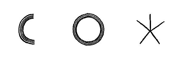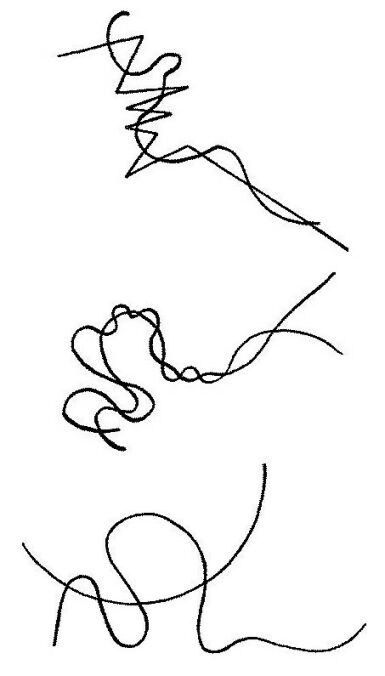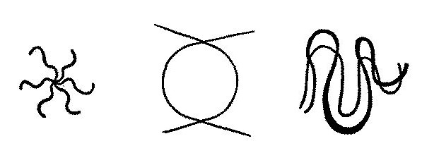 До сих пор классификации и анализу свойств подвергались отдельные линии. Различные формы применения множества линий и формы их взаимного воздействия, подчинение отдельной линии группе, или комплексу, линий – это вопрос композиции, не входящий сейчас в круг моих нынешних задач. И тем не менее необходимо несколько характерных примеров, на которых может быть освещена природа отдельных линий. Здесь будут показаны некоторые, далеко не исчерпывающие, сочетания, исключительно как пример пути к более сложным образованиям. Некоторые простейшие примеры ритмов: Рис. 50. Повторение прямой с чередованием веса Рис. 51. Повторение ломаной Рис. 52. Встречное повторение ломаной. Образование плоскости