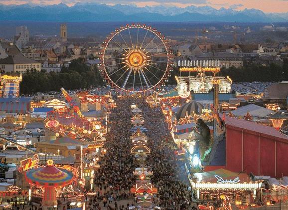 Мюнхен в ясную погоду – Октоберфест на фоне Альпийских гор.