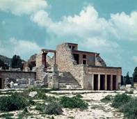 Один из залов Лабиринта Прихотливы и запутанны Критские дворцы. Они состоят из группирующихся вокруг центрального двора помещений разных размеров и форм в два - три яруса, не подчинённых никакому регулярному плану. Таков дворец в Кноссе, названный Лабиринтом из-за того, что его тронный зал был украшен изображением лабриса - двуручной секиры, священной на Крите. Белые стены, тёмные сверкающие колонны, суживающиеся книзу, - особенность критской архитектуры; ничего громоздкого, давящего. В своих дворцах критские цари жили вольготно и пышно. Главным украшением дворцовых покоев была живопись. Стены дворца заполняли росписи в виде фризов или панелей. В росписях преобладали яркие и светлые краски, которые не служили раскраской внутри контура, как в египетских фресках, а наносились цветовым пятном, динамичным, подвижным, формообразующим. В великих аграрных цивилизациях Египта и Месопотамии точная, устойчивая и наиболее рациональная организация обрабатываемой площади соответственно определяла и характер художественного творчества, рождая стройную, расчленённую композицию.