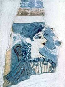 Придворная дама ("Парижанка") В сравнении с искусством Египта критская живопись раскрывает перед нами совершенно новый мир. Вот, например, фрагмент стенной росписи, изображающий девушку в профиль. Огромный гла, изображённый, как в египетских росписях, в фас. Влияние Египта часто сказывается в критском искусстве. Но в нём дышит совсем иной дух.