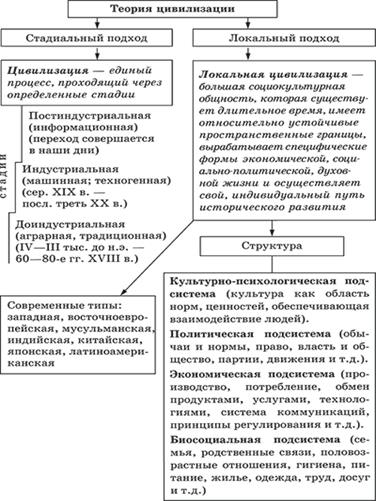 Различными исследователями выделяется множество локальных цивилизаций (например, английский историк, социолог, дипломат, общественный деятель А. Тойнби (1889–1975) насчитывал в истории человечества 21 цивилизацию), которые могут совпадать с границами государств (китайская цивилизация) или охватывать несколько стран (античная, западная). Обычно все многообразие локальных цивилизаций делят на две большие группы – западную и восточную.