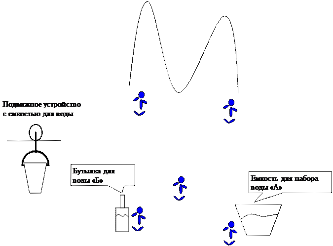 5. «Алькотрас» Исходные условия: стена высотой три метра и ширенной не менее двух метров. Задание: перелезть через стену. Ограничения: - девушки в юбках не допускаются. 6. «Рукоход» Исходные условия: группа становится на руки в колонну по одному, ноги ставятся на плечи сзади идущему. Задание: пройти на руках не менее 10 метров (определяет мастер). Ограничения: - при касании ног земли группа возвращается на начало. Примечание для ведущего: при необходимости проводится в тишине или с песней. 7. «Буква «А» Исходные условия: бревна сбиты в форме буква «А». Высота буквы не менее трех метров. К концам буквы и на пересечениях привязаны веревки (не менее 2-х за один конец). Задание: путем перемещения центра тяжести буквы переместить букву на 10 метров. Ограничения: - букву передвигать только при помощи веревок, взятых за конец; - буква должна находится под углом 90 градусов; - буква должна весить более 100 кг.