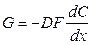 где D – коэффициент молекулярной или турбулентной диффузии, м2/с, x - расстояние, м. В соответствии с современной теорией Нернста вблизи границы раздела фаз существует диффузионный слой, в котором происходит резкое изменение концентраций, и перенос вещества осуществляется по механизму молекулярной диффузии. В жидкостях толщина пограничного диффузионного слоя намного меньше толщины вязкого пограничного слоя. При физической абсорбции скорость диффузии в пограничном слое можно определить на основе второго закона Фика: