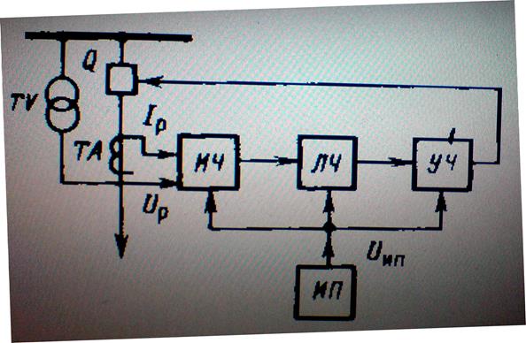 Рис. Структурная релейная защита (ИЧ - измерительная часть), (ЛЧ - логическая часть) Управляющая - усиливающая часть служит, для усиления сигнала логической части, до значения необходимого для отключения выключателя и приведения в действие других устройств, по сколько сигналы логической части обычно имеют недостаточную мощность, так же служит для размножения логической части. Элементные базы Электромеханическая база – может использоваться для осуществления всех функциональных частей и органов релейной защиты, в виде электромеханических реле. Полупроводниковая база - может использоваться для осуществления всех функциональных частей и органов релейной защиты, в виде полупроводниковых элементов, аналоговых и цифровых микросхем. Микропроцессорная база – может использоваться для осуществления измерительной и логической частей релейной защиты, на базе микропроцессорных ЭВМ и многопроцессорных систем. Виды реле Элементы измерительной части. На вход измерительного органа непрерывно подается один, два или несколько входных сигналов в виде тока или напряжения защищаемого объекта, дающие информацию об его состоянии. Измерительный орган срабатывает, если входные сигналы фиксируют появления повреждения. Выходной сигнал имеет два дискретных значения соответствующих действию или бездействию измерительного органа. Измерительные реле (тока, напряжения) действующие при возрастании величины, на которую они реагируют – называются максимальные. А при снижении величины – минимальные. По способу включения на ток и напряжения сети измерительные реле делятся на; вторичные - включаемые на ток и напряжение защищаемого участка через измерительные трансформаторы, и на первичные - включаемые непосредственно на первичные токи и напряжение. 2. Элементы логической части. Логическая часть состоит из тепловых элементов (реле) различного назначения; органов логики - выполняющих типовые логические операции, элементов времени - создающих выдержки времени, органов памяти - продлевающих действие кратковременного сигнала, сигнальных органов - подающих сигналы о действии релейной защиты или ее отдельных органов, По характеру выполняемых функции, эти реле называются логическими или вспомогательными.